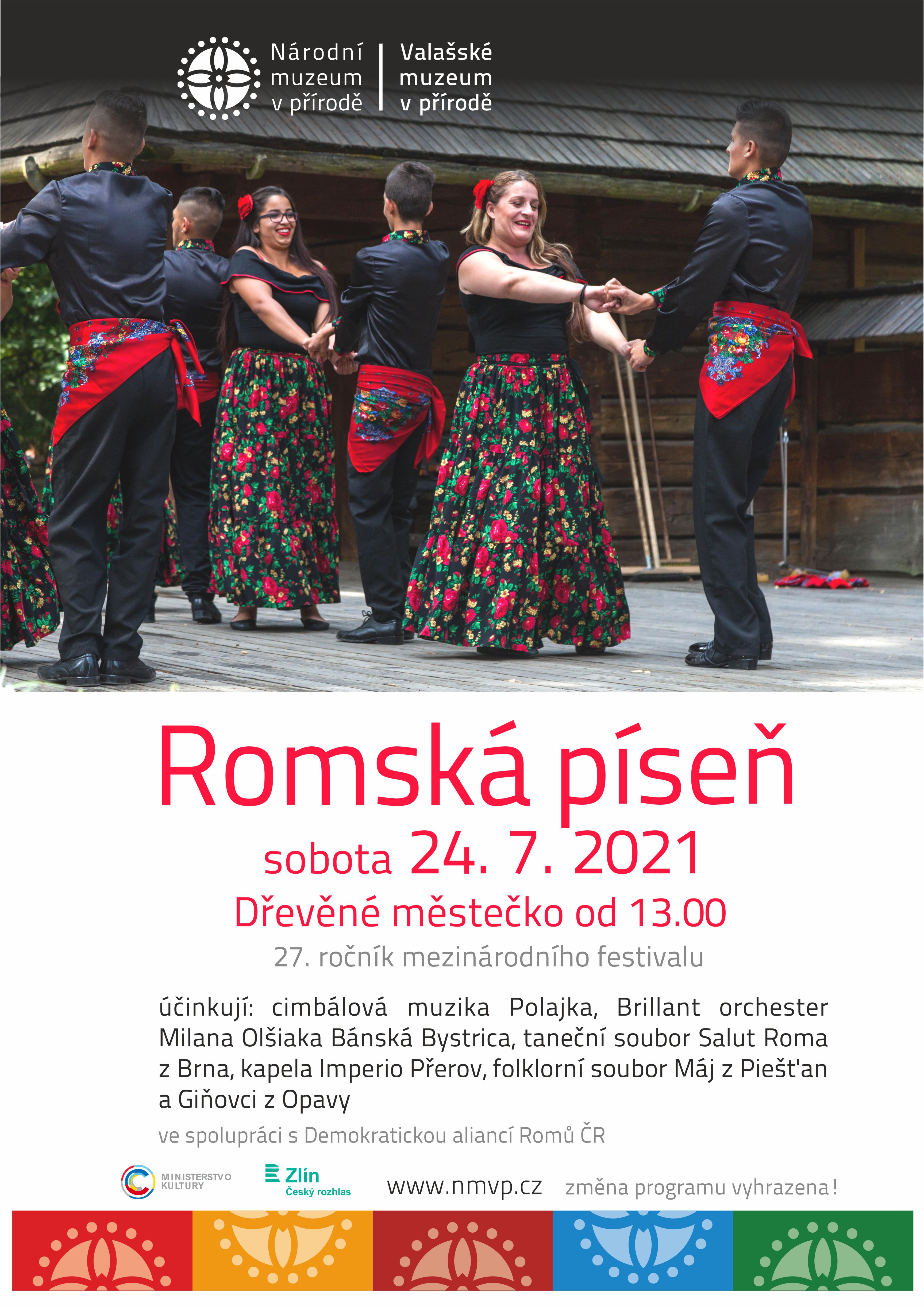 Temperamentní rytmy představí v sobotu 24. července 2021 již 27. ročník mezinárodního festivalu Romská píseň. Program festivalu bude zahájen v areálu Dřevěného městečka od 13.00.