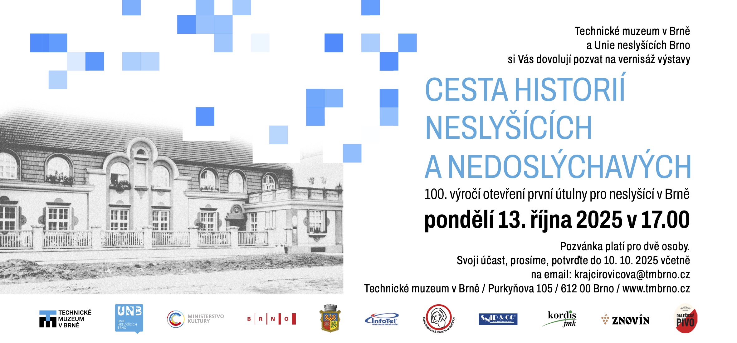Podtitulem nové komorní výstavy v Technickém muzeu v Brně je „Sto let cesty neslyšících: historie, vzdělávání a budoucnost technologií pro odstranění komunikačních bariér.“ Vlastní výstava zahrnuje 13 panelů, které návštěvníky provedou bohatou historií neslyšících v Brně, na Moravě i v celé republice. Zájemci objeví, jaké pomůcky neslyšící a nedoslýchaví využívali pro lepší slyšení, jak komunikovali, kde hledali inspiraci a jak probíhalo jejich vzdělávání. A nejen to – nahlédnou i do nejbližší budoucnosti a seznámí se s inovacemi a moderními technologiemi, které mohou již brzy změnit možnosti v oblasti sluchu.