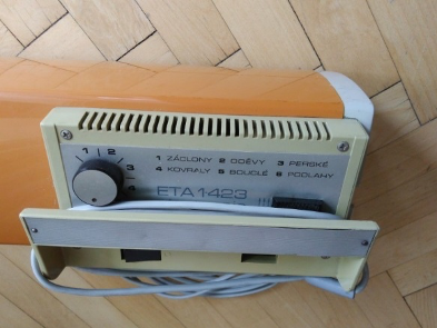 Vysavač Eta Electronic 1423 s kompletním příslušenstvím pocházející z přelomu 70.-80. let 20. století