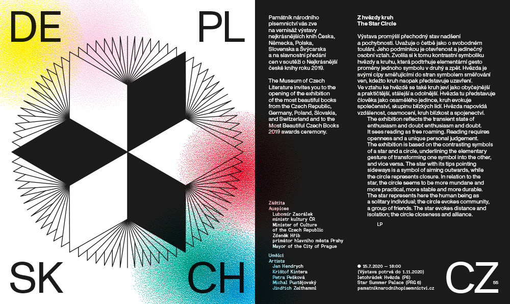 Z HVĚZDY KRUH nejkrásnějších knih Česka, Německa, Polska, Slovenska a Švýcarska a na předání cen v soutěži o Nejkrásnější české knihy roku 2019.