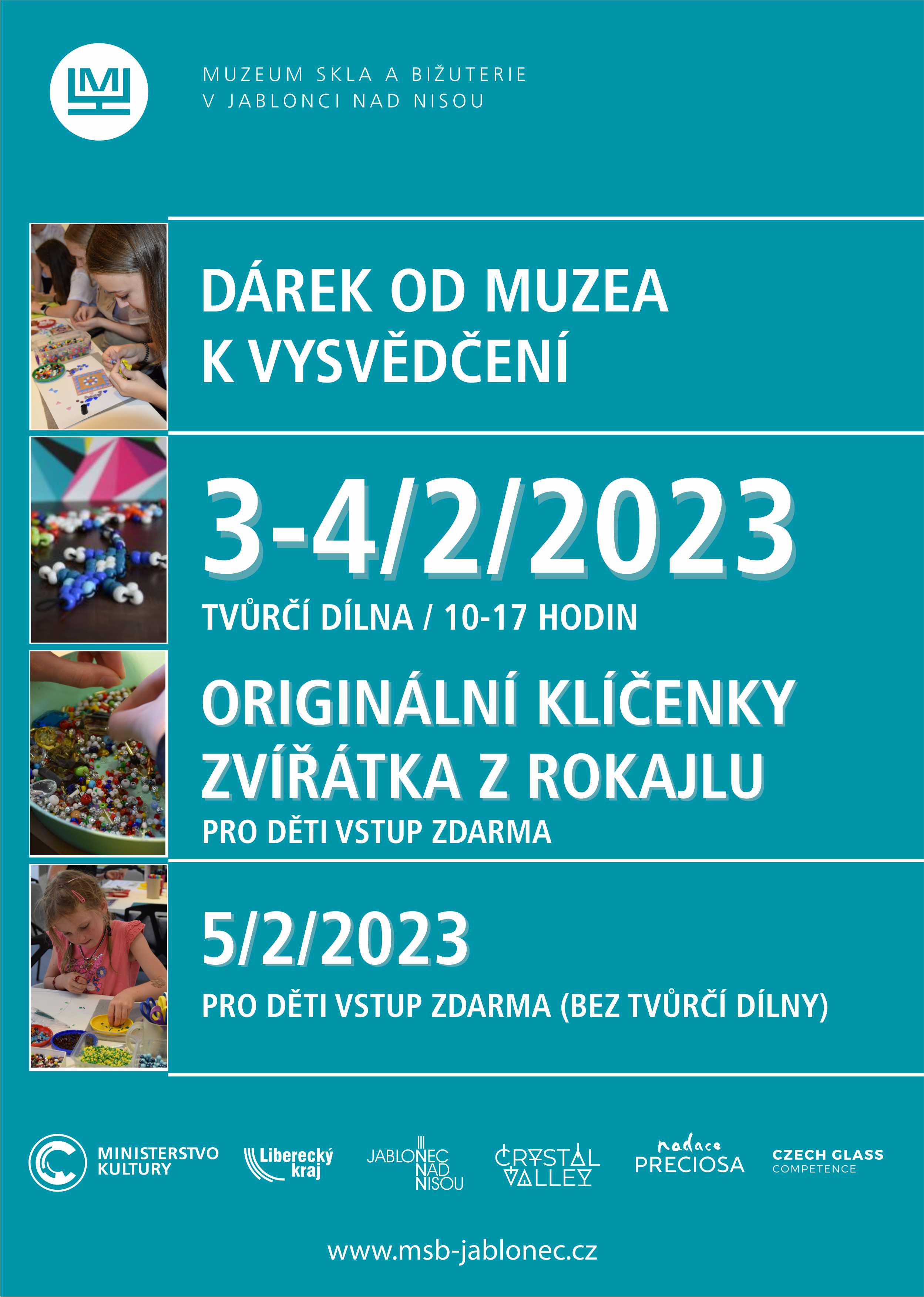 Muzeum skla a bižuterie v Jablonci nad Nisou připravilo zábavné tvoření pro děti jako dárek k pololetnímu vysvědčení. Těšit se mohou na výrobu originálních klíčenek a barevných zvířátek z měkkých drátků a korálků.