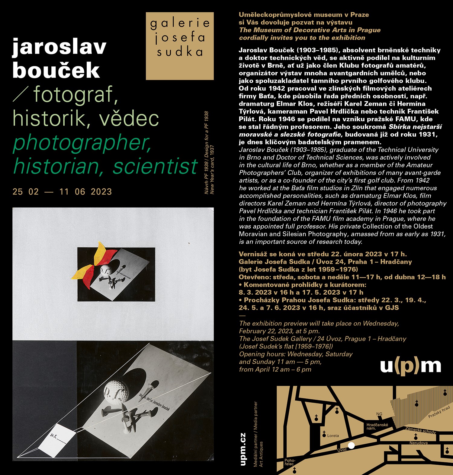 Již 82. výstava v Galerii Josefa Sudka představuje osobnost Jaroslava Boučka (1903–1985), odborníka zejména v oblasti fotografické a filmové techniky. Jeho pole působnosti však bylo širší. Kromě vědy se věnoval též pedagogické a sběratelské práci, patřil k předním organizátorům kulturního života a již od střední školy sám aktivně fotografoval.