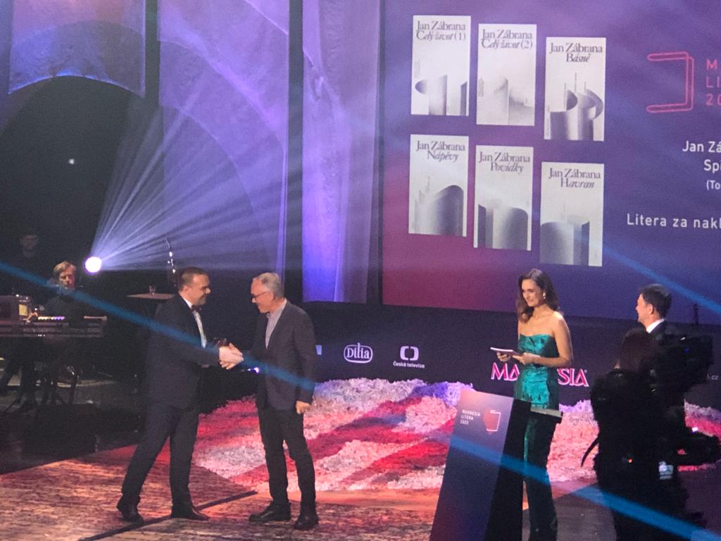 Výroční ceny, jejichž smyslem je propagovat kvalitní literaturu, byly letos na Nové scéně Národního divadla předány již po dvaadvacáté. Cenu v kategorii „Litera za nakladatelský čin“ předal ministr kultury Martin Baxa.