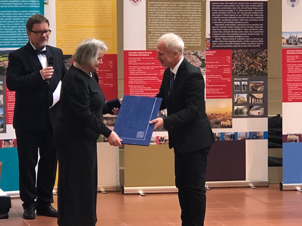 Součástí slavnostního vyhlášení bylo i udělení ceny Ministerstva kultury za památkovou péči, kterou dostala architektka, projektantka, autorka publikací o památkové péči paní Kamila Matoušková.