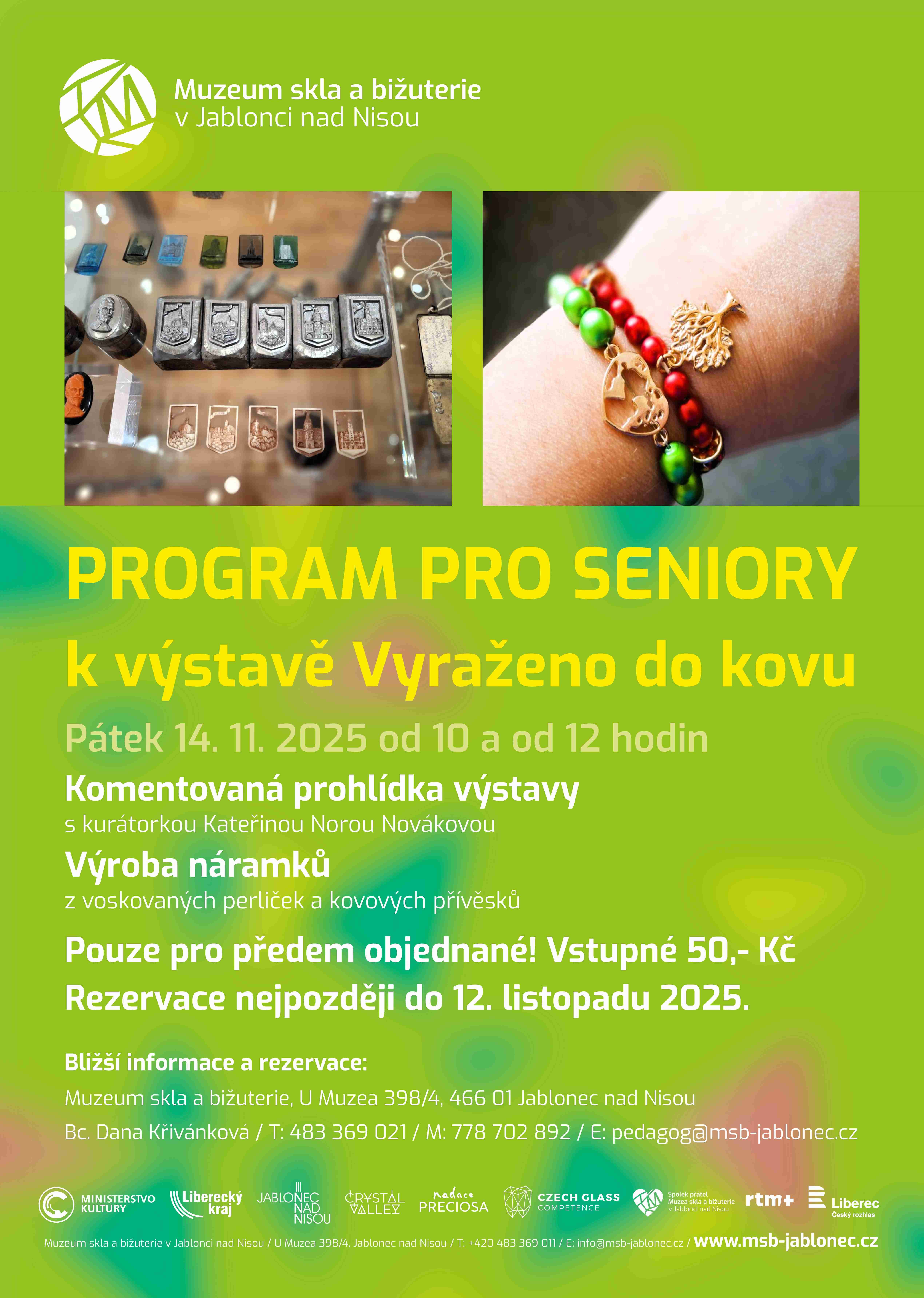 Program se koná v pátek 14. listopadu od 10 a od 12 hodin a je určen pouze pro předem objednané seniory. Objednat se mohou až do 12. listopadu. Vstupné je 50,- Kč a zahrnuje i prohlídku celého muzea.